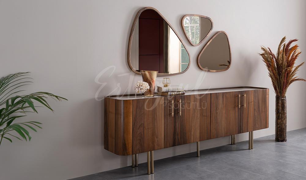 Takım İçeriği: 1 Adet Konsol ve Aynası, 1 Adet Yemek Masası, 6 Adet Sandalyeden Oluşmaktadır.