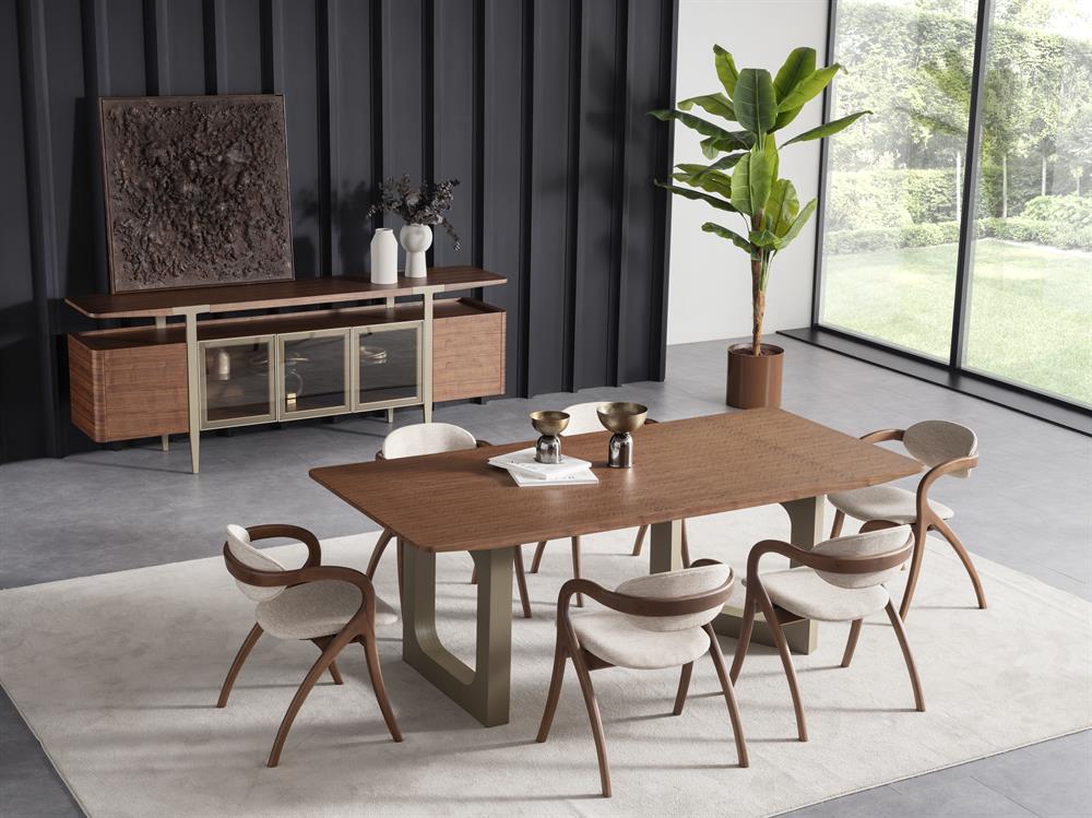 Loop Yemek Odası Takımı, modern çizgileri ve zarif tasarımıyla yemek alanlarınıza hem şıklık hem de fonksiyonellik katar. Takım; masa ve sandalyeleriyle geniş kullanım alanı sunarken, ergonomik ve dayanıklı yapısıyla uzun ömürlü kullanım sağlar. Loop mobilya grubu ile uyumlu tasarımı sayesinde salonlarınıza estetik bir bütünlük kazandırır.